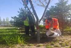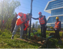 18级金融学党员崔庆华,参与了包头明拓实习公司的植树,公司绿地总占地1.3万平方米,绿化率达到了80%。选苗的季节、品种、运苗过程的包装、运输条件和押运人员的配合、时效性、运输方式 都决定了树苗的存活率。崔庆华参与了栽培前的清理挖坑,植树,填土,固定,浇水。