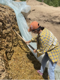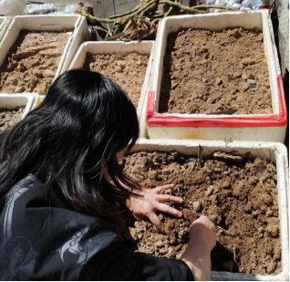 他参与到了“施肥”工作中,这一工作流程十分的简单,有基地的老人带领,我很快就熟悉掌握了其中的技巧,高效而且有质量地完成了我所负责的区域。劳作过后,看着自己的劳动成果,心里的那份满足与充实,会使人感到神清气爽,让我可以暂时忘却身体上的疲惫。