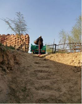 20级金融学积极分子董建国,帮助家里运木材。他需要用锄头和铁锹将松树根周围的黄土铲去,锄头和铁锹的交替使用,十多分钟下来,也只是把浅层的黄土挖去,深层的土开始潮湿起来,伴有很多小石块,用耙子才可以继续,耙子在手中由头顶向黄土刨去,需要很大的力气才能够将土挖出来。