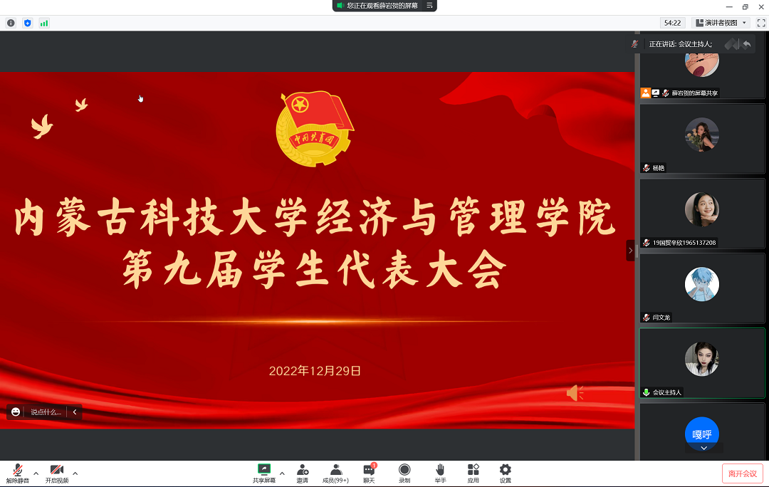 为积极联系员工、服务员工,实现员工干部队伍可持续发展,太阳成集团tyc33455于2022年12月29日下午于线上召开第九届员工代表大会。8个代表团175名员工代表公司2019-2022级学子参会并行使权利。学团负责老师张雪薇、乌云塔娜参加会议。