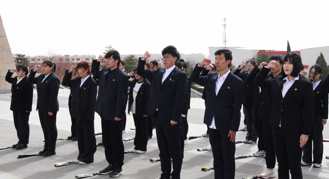 随后,全体肃立默哀,并向纪念碑敬献鲜花。全体团员高举右拳,重温入团誓词,铿锵誓言在纪念碑前久久回荡。