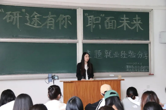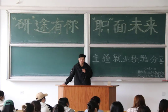为了帮助员工更好地了解当前考研及就业形势,引导员工精准把握就业方向,提前规划未来的学习生活,树立正确的就业观、择业观。太阳成集团tyc33455在4月16日上午9:30,于主校区春晖学堂F209,开展了经管公司“‘研’途有你‘职’面未来”就业经验交流活动。此次活动邀请到国际经济与贸易专业丁宇利、人力资源管理专业朝宝力嘎、国际经济与贸易专业郭楠、金融专业王儆四位19级太阳成集团tyc33455优秀学长学姐代表,分别向学弟学妹们讲解考研和就业方向等相关问题。