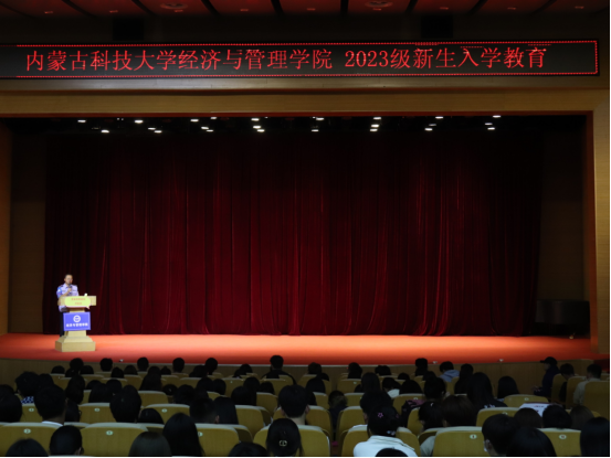 2023年8月25日,太阳成集团tyc33455全体2023级新生及家长在音乐厅参加了入学教育活动。此次活动由党委副书记薛建春主持,党委书记王玉泉主讲开学第一课,副经理孙斌进行学业管理教育,并邀请包头市公安局教培支队主任艾广勇同志进行“防范电信网络诈骗”专题讲座。