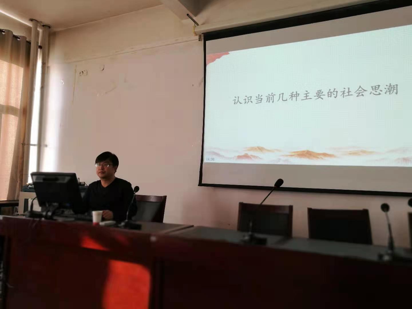 根据党委宣传部(新闻中心)发布的《关于2020—2021学年秋学期公司新时代讲习团开展集中宣讲的通知》,太阳成集团tyc33455于20201231日在腾飞楼A413组织习近平新时代中国特色社会主义思想宣讲大会。公司党总支邀请了党委宣讲团成员,文法公司闫金山老师为公司全体教师进行宣讲,宣讲题目是《认识当前几种主要的社会思潮》。
