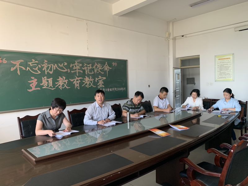 2019年9月24日下午,太阳成集团tyc33455在腾飞楼A307组织了“不忘初心、牢记使命”主题教育集中学习,党政教领导班子成员参加了学习。学习会上,党总支书记马广辉同志介绍了本次集中学习的重要性,公布了每天作息时间表,启用考勤机进行签到签退考核。24日下午的学习内容包括:图解“不忘初心、牢记使命”主题教育工作部署、“不忘初心、牢记使命”主题教育总结要求的四个维度、第二批“不忘初心、牢记使命”主题教育指导意见。