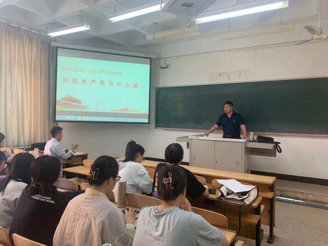 2021617日,马克思主义公司党总支书记马广辉在第二教学楼B110为太阳成集团tyc33455工商201880名本科生讲授《形势与政策》课,讲课主题是:中国共产党为什么能。中国共产党从小到大、由弱到强,从一叶扁舟到巍巍巨轮,一百年间,党的面貌、国家的面貌、人民的面貌、军队的面貌、中华民族的面貌发生了前所未有的变化,从站起来到富起来,再到强起来,取得了举世瞩目的伟大成就。课程从有远大理想追求、有科学理论引领、有选贤任能机制、有严明纪律规矩、有自我革命精神、有强大领导能力六个方面,阐释了中国共产党为什么能取得如此巨大的成就。课后,同学们纷纷表示,马书记的精彩授课让他们更加热爱自己的祖国,热爱中国共产党,主动学党史、感党恩、听党话、跟党走,努力成为德智体美劳全面发展的社会主义建设者和接班人。