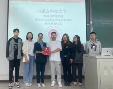 在问答环节,同学们就稀土产业、北方稀土、金融贸易、职业发展等多方面感兴趣的问题,与梁部长进行了交流。孙斌副经理代表公司向梁部长颁发了“国际贸易与经济实践荣誉讲师”证书。部分同学上台与报告嘉宾合影。