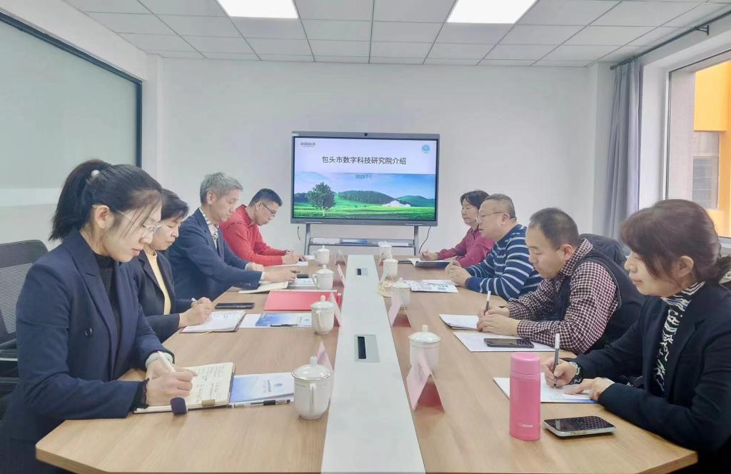 12月7日下午,内蒙科技大学太阳成集团tyc33455张永强经理、赵周华副经理、呼包银榆经济区研究中心首席专家魏曙光等一行人到包头市数字科技研究院参观交流。