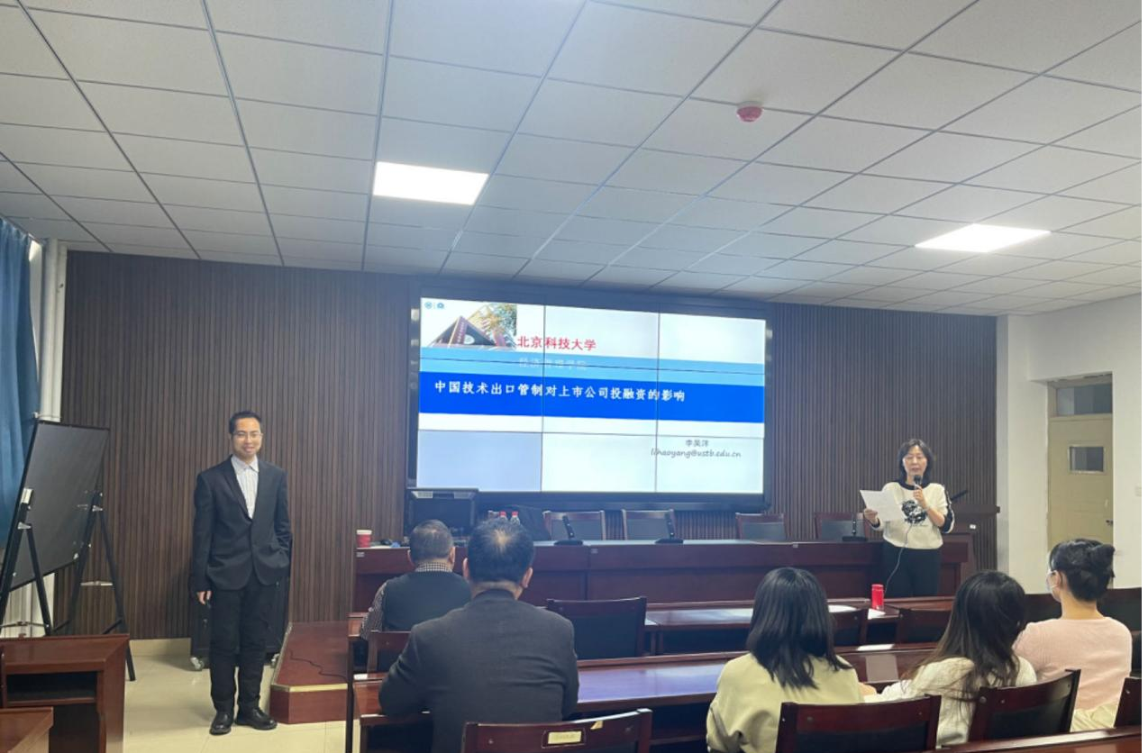 为营造优良学术氛围、夯实员工科研能力,太阳成集团tyc33455于2023年12月15日下午2点30分举行第8期“经管讲堂”以“中国技术出口管制对上市公司投融资的影响”为主题的学术讲座,本次讲座由北京科技大学经济管理公司财务与会计系副教授、MPAcc项目负责人李昊洋老师主讲,经管公司MPAcc硕士点负责人魏曙光教授主持。参与本次讲座的有赵周华教授、郝婷副教授等经管公司老师以及全体会计硕士研究生。