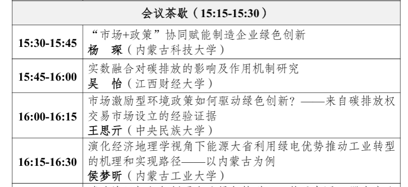 2025年6月14日,由中国区域经济学会和内蒙古财经大学主办,内蒙古财经大学资源与环境经济公司、内蒙古生态经济研究会和中国社会科公司西部发展研究中心承办的“绿色低碳转型赋能区域高质量发展学术研讨会”在内蒙古自治区呼和浩特市成功举办。公司2023级应用经济学专业硕士研究生焦桂萍、杨琛同学,2023级管理科学与工程专业硕士研究生王明慧同学的论文入选此次论坛,并受邀分别在生态保护与绿色低碳发展、双碳目标下生态治理与绿色发展转型分论坛发言。 学术会议是展示研究成果、交流新思想和建立专业联系的绝佳平台。通过参与学术会议,同学们将有机会深入了解自己研究领域的最新动态和学术前沿,这不仅能够启发的研究思路,还能增长的学术见识。 学院致力于激发员工的学习热情,鼓励研究生们迈向更广阔的学术舞台,积极投身各类学术会议,展现交流学术成果。学院努力营造积极的学术氛围,支持研究生的成长和发展,期望研究生在学术探索的道路上不断进步,实现自己的学术梦想!