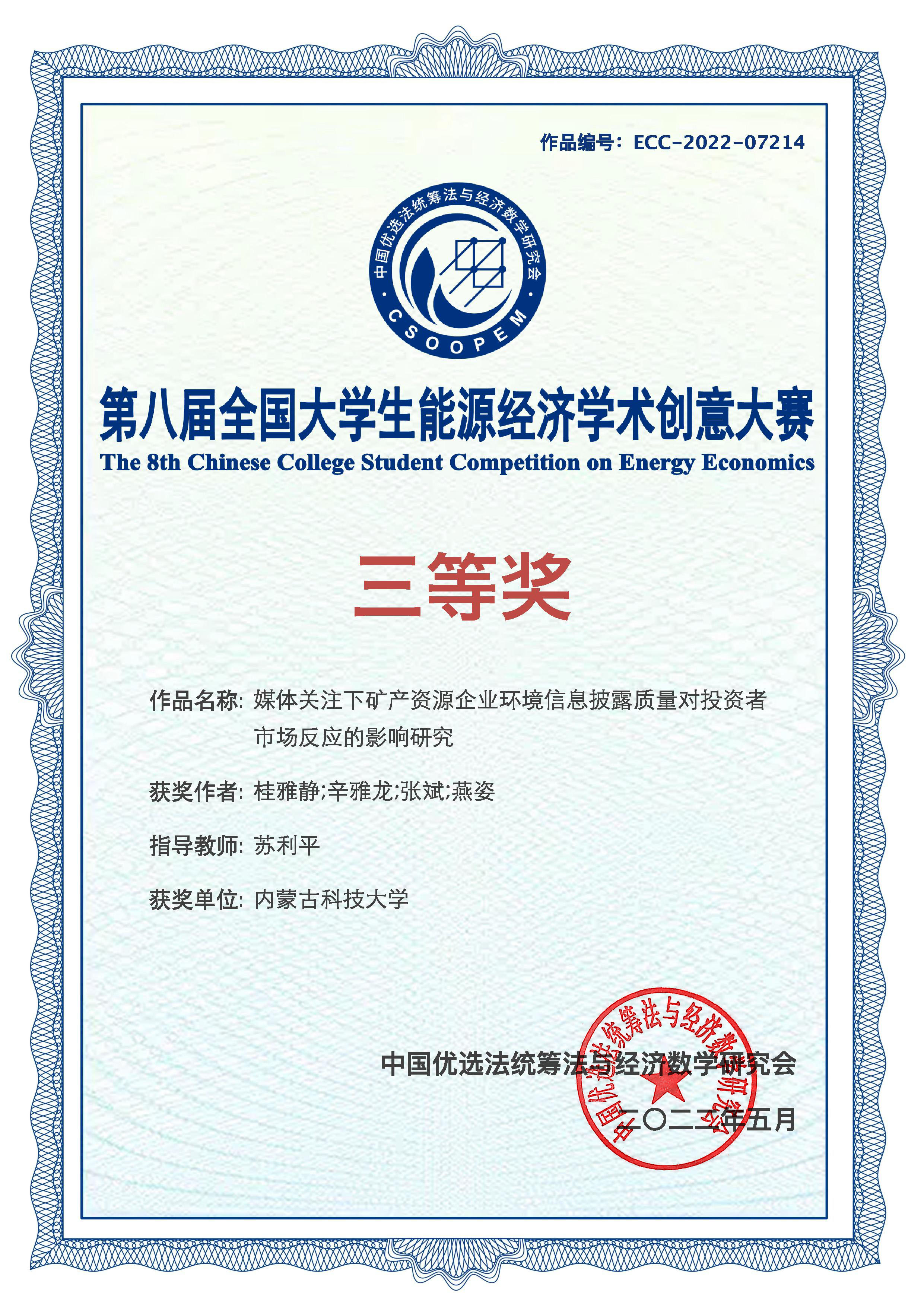 下一条:太阳成集团tyc33455师生荣获第八届全国老员工能源经济学术创意大赛第5赛区-老员工队三等奖