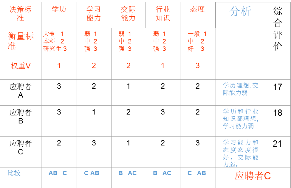 实例分析:三个应聘者中选择谁? |