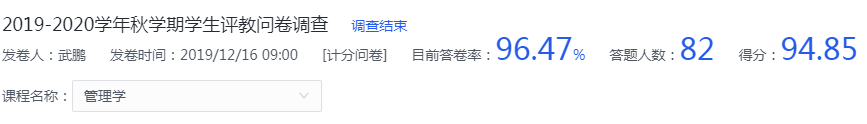 图1 《管理学》课程员工评教情况