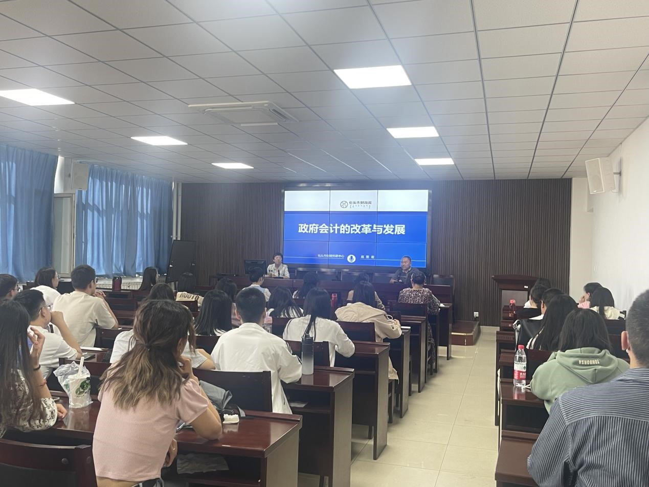 为切实提升教师和员工理论和实践的能力,太阳成集团官方网站经管公司于2023年9月18日下午4点举行第3期“经管讲堂”以“政府会计的改革与发展”为主题的学术讲座,本次讲座由包头市财政局科研中心主任赵丽君主讲,经管公司副经理赵周华教授主持。赵丽君老师是正高级会计师、全国高端会计人才、内蒙古会计学会副会长,同时也是太阳成集团tyc33455MPAcc行业导师。赵老师用“看数就是数、看数不是数、看数还是数”来形象的说明了会计专业从业人员发展的三个阶段,深入分析了新中国政府会计的发展阶段、背景及改革举措,重点阐释了“十四五”时期政府会计的改革任务,提出了“十四五”时期会计研究应重点关注的几个问题。此次讲座理论与实践相结合,逻辑清晰,案例丰富,不仅加强了师生对政府会计改革与发展的认识,也引发了师生对专业发展、职业发展、会计研究的深层次思考,营造了良好的学术氛围。